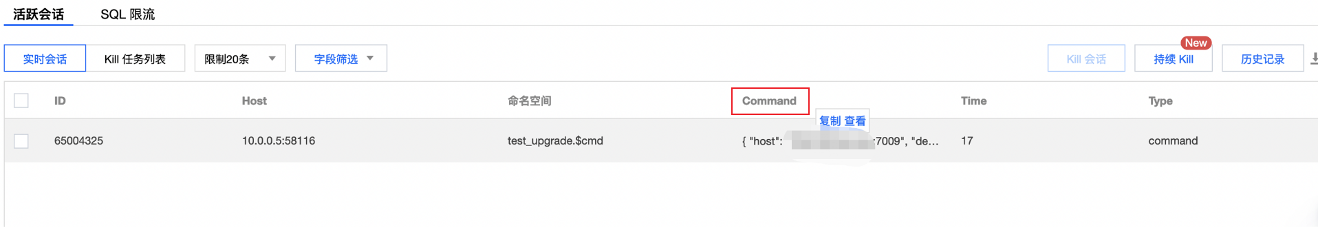 db.serverStatus().tcmalloc 查看。如下图所示,使用db.serverStatus().tcmalloc.tcmalloc.formattedString查询内存信息。其中的Bytes in use by application对应的内存指 Mongod 节点实际消耗的内存,Bytes in page heap freelist 为未归还给操作系统的内存。