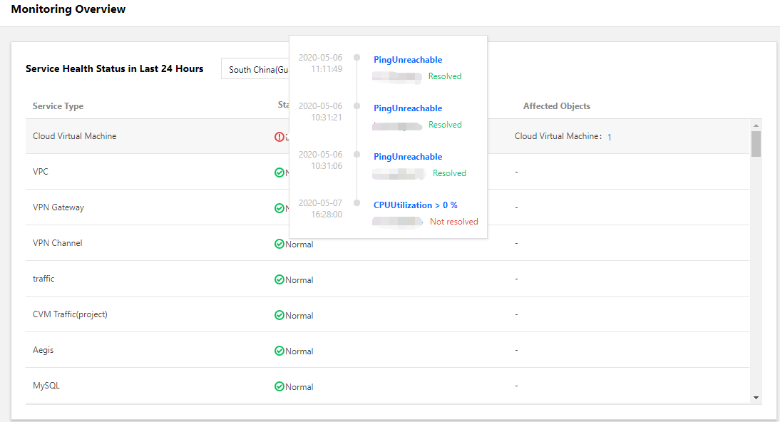监控概览主要提供云产品总体监控概况、告警概况,让您可以实时了解云产品的健康状态,保证云产品的正常运行。