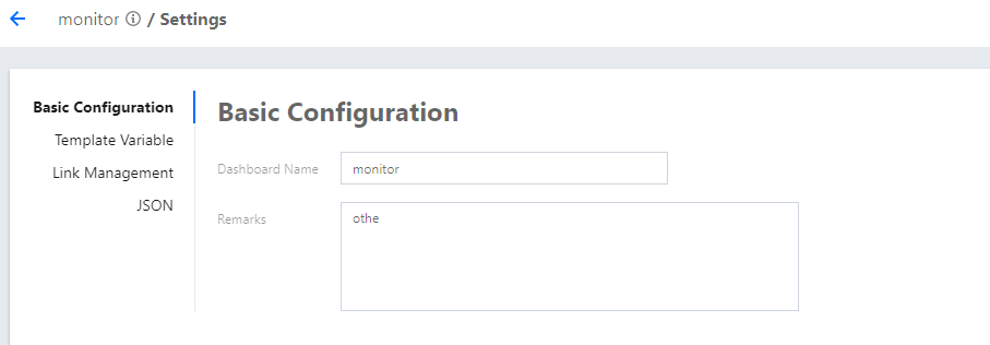 单击【基础设置】,您可以对定义 Dashboard 名称和设置 Dashboard 备注。