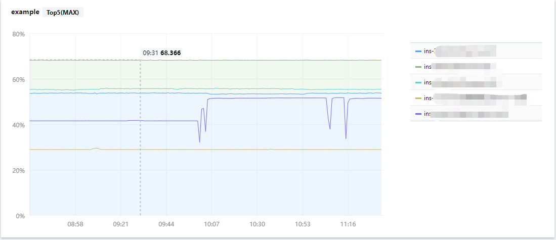 单击图表中单击【】,一键开启 TOPN 功能。调整排序规则、展示数量。方便您大批量查看机器高低负载。