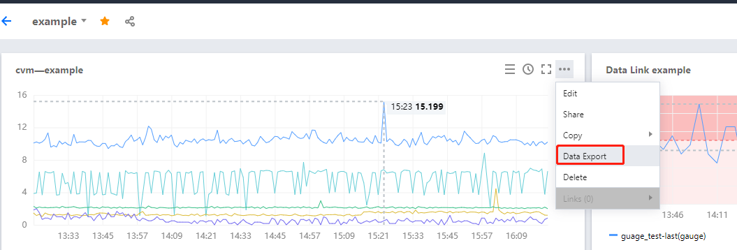 在 Dashboard 列表中找到您需要导出数据图表对应的 Dashboard,单击对应的面板名。进入 Dashboard 管理页。