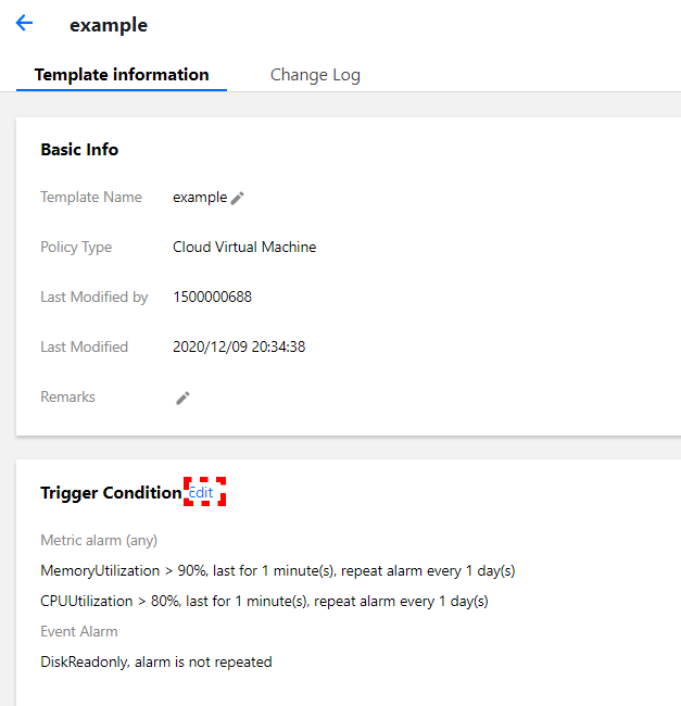 4. 单击【编辑】,可修改触发条件模板基础信息和告警触发条件。
