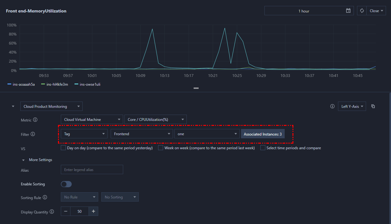 在 Dashboard 应用标签:Dashboard 支持图表数据源绑定标签,标签下的实例增减会自动更新监控曲线。实现快速、批量、动态绑定实例,极大减少图表新建和二次修改成本。
