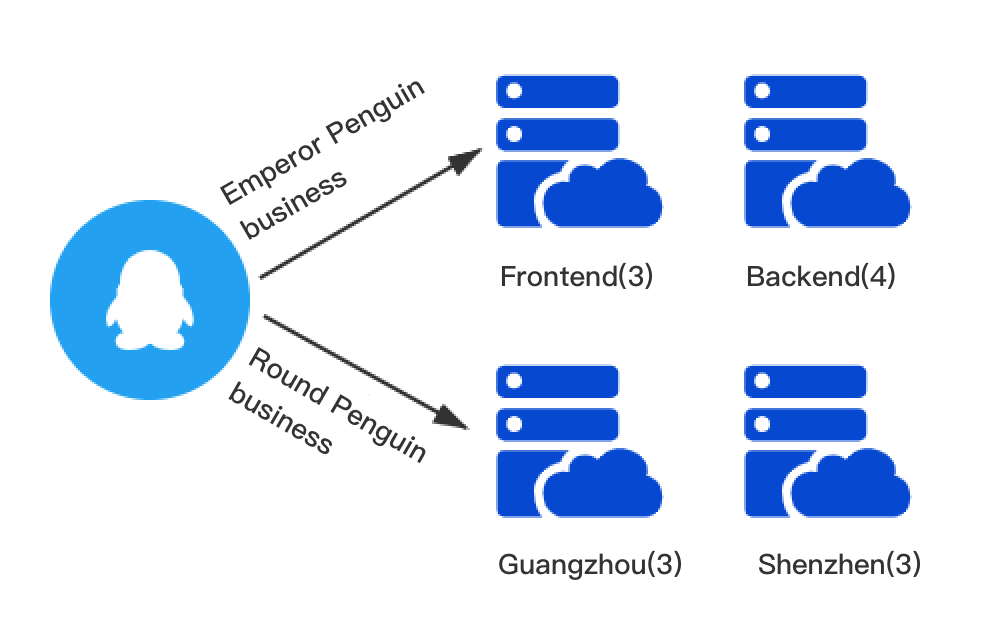 如下图所示,企鹅项目下有2个业务,分别为帝企鹅业务和圆企鹅业务。
