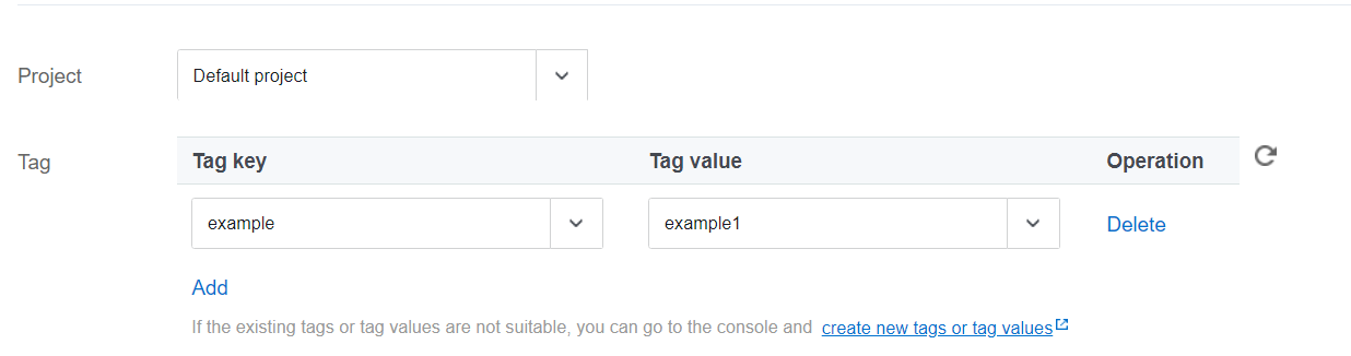 2.单击【新建】,参考 通过购买页创建实例 创建云服务器实例。需在创建实例步骤2中设置主机时,在标签列选择对应的标签键和标签值。 现有云服务器实例关联标签