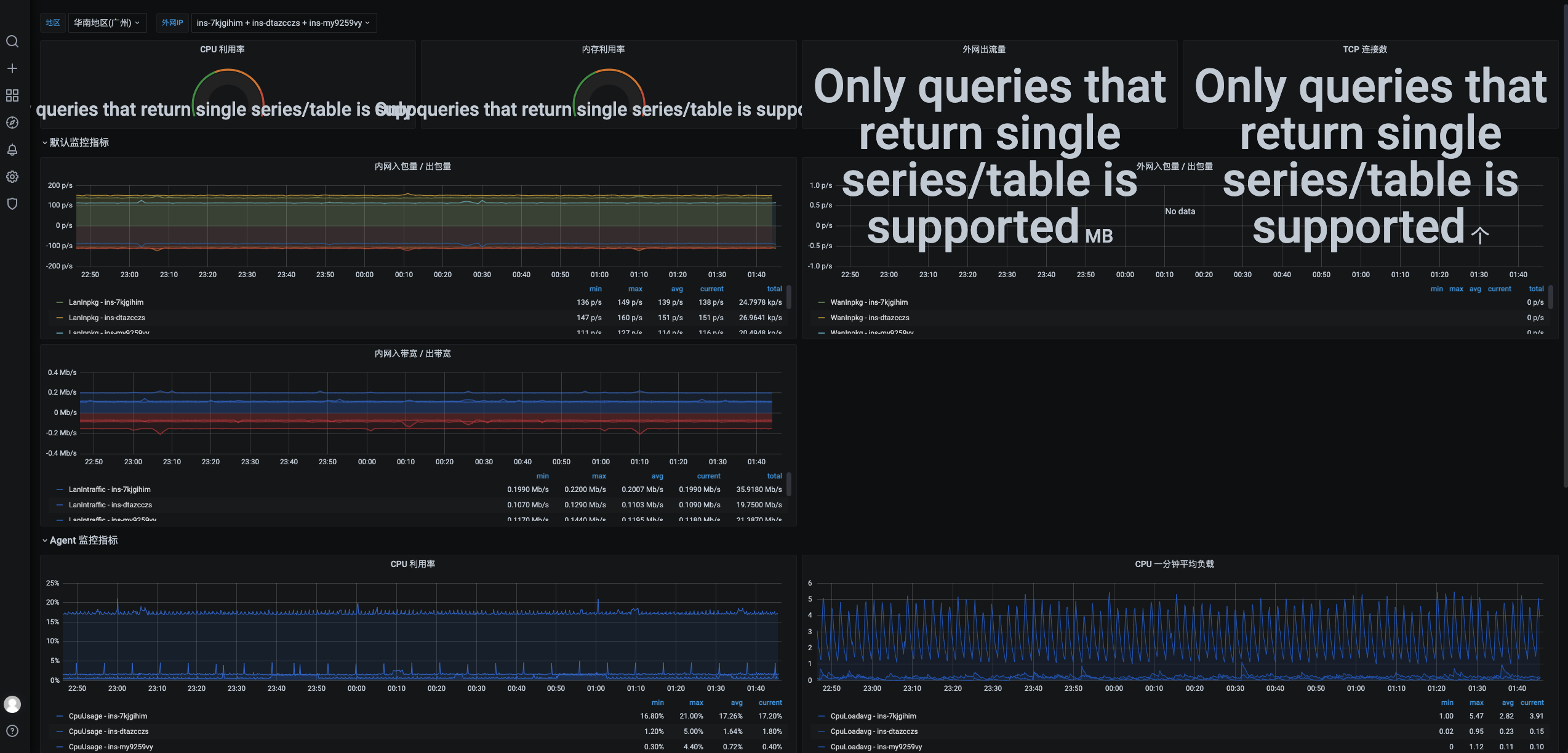 仪表盘图表仅支持单 query 查询,如需对比多实例请使用折线图 (Line)。InstanceId ,如何展示 InstanceName ?InstanceAlias=InstanceName ,或者使用 display 属性进行拼接,例:Namespace=QCE/CVM&Action=DescribeInstances&Region=$region&InstanceAlias=InstanceNameNamespace=QCE/CVM&Action=DescribeInstances&Region=$region&display=${InstanceId}-${InstanceName}InstanceAlias 和 display 字段,则仅会展示 display 的值。文档反馈