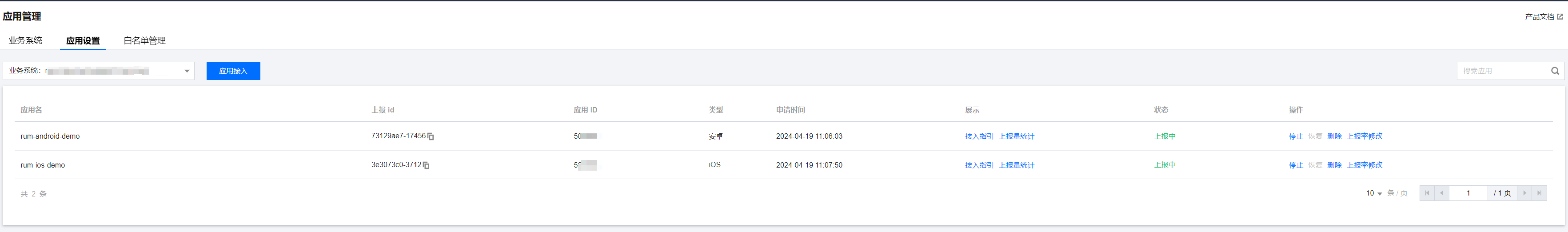 在应用管理页您可以查看您已接入的终端应用信息,以及新的接入应用、应用 ID 、设置白名单信息。