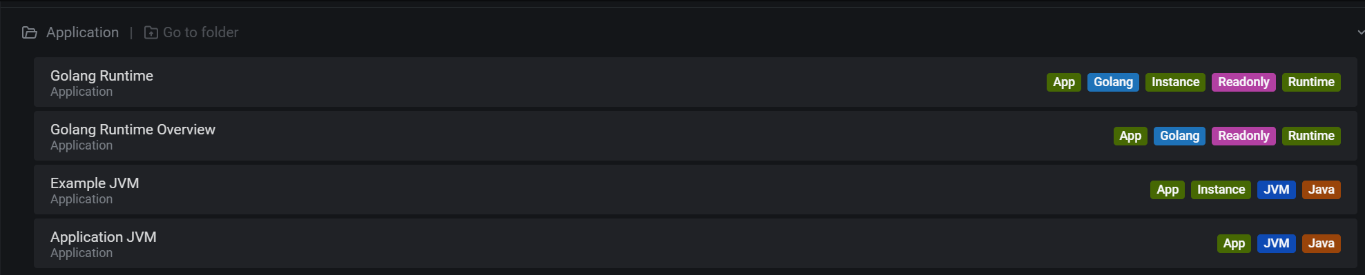 Dashboards/Manage/Application 下查看应用相关的监控大屏。