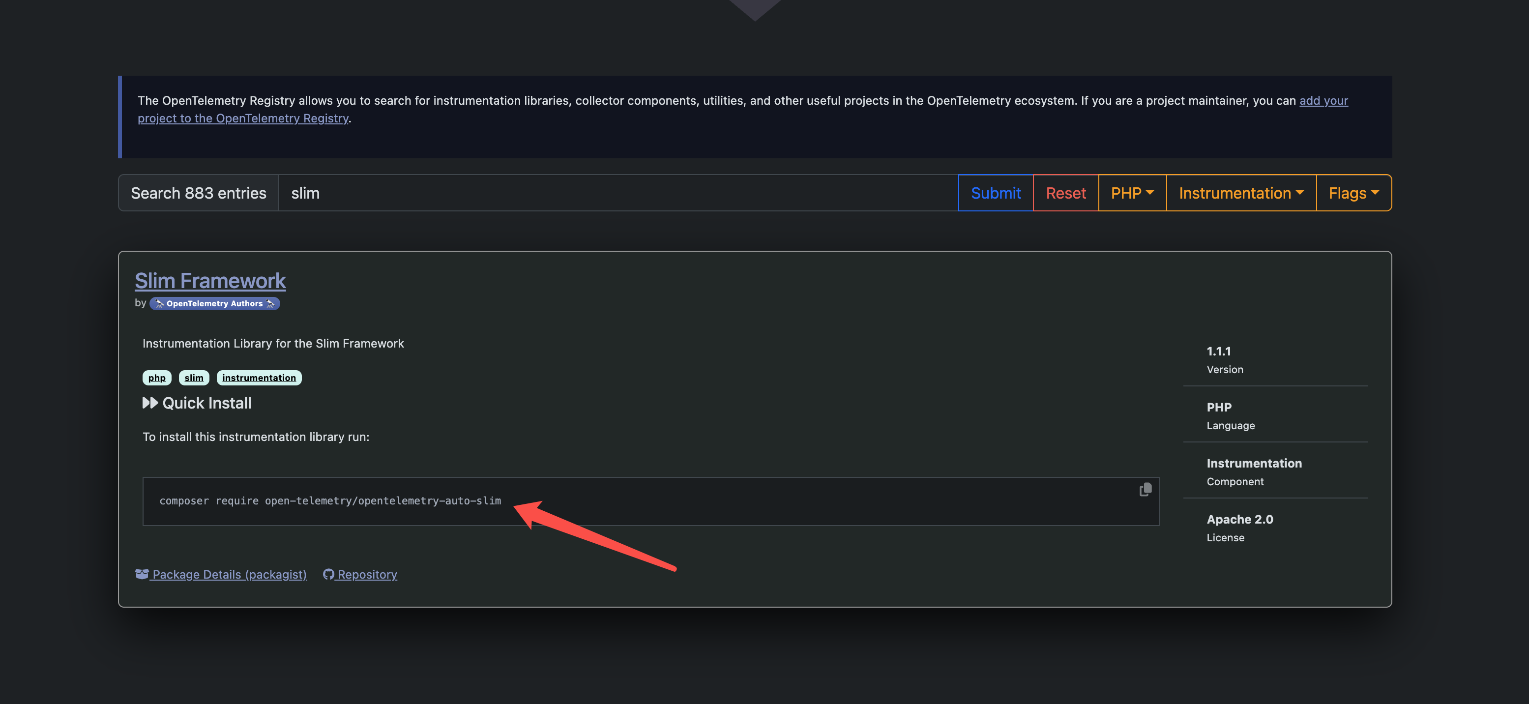 pecl install grpc # 这一步构建时间较长composer config allow-plugins.php-http/discovery falsecomposer require \\open-telemetry/sdk \\open-telemetry/exporter-otlp \\open-telemetry/transport-grpc \\php-http/guzzle7-adapter \\open-telemetry/opentelemetry-auto-slim \\open-telemetry/opentelemetry-auto-pdo