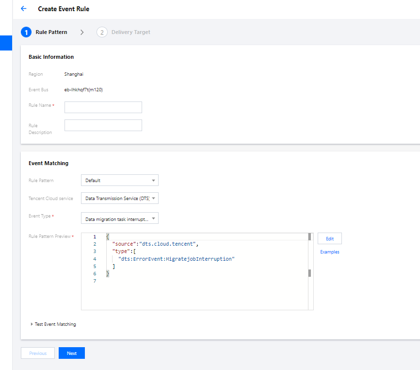 4. 单击新建事件规则,根据页面提示和实际需求,填写相关信息,完成规则和目标的绑定,如下图所示: