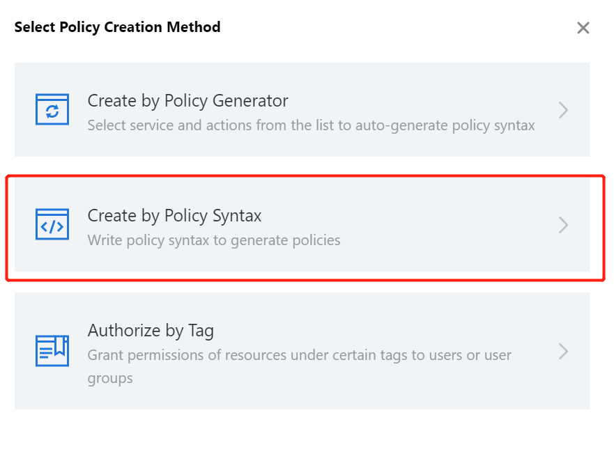 1. 使用主账号或拥有 QcloudCamFullAccess 权限的子账号进入访问控制 > 策略。 2. 单击新建自定义策略 > 按策略语法创建,选择空白模板。根据 策略语法说明 完成策略编辑。
