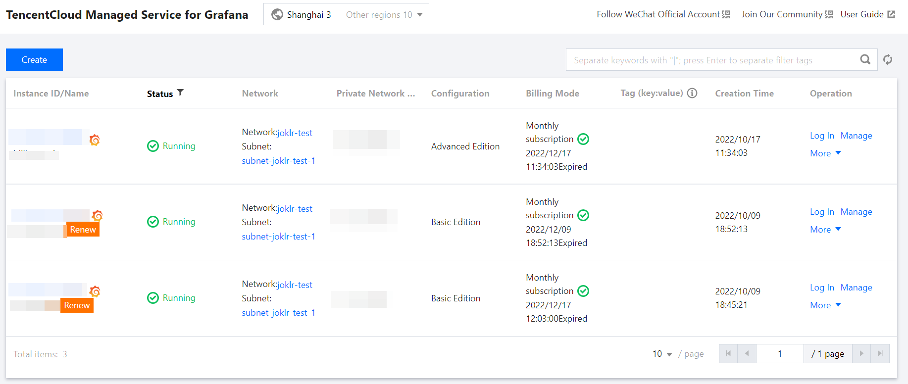 在实例列表中,找到对应的实例,单击