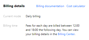 计费情况展示当前云点播账户的计费方式。当计费方式为日结计费时,每日12:00-18:00对前一天产生的费用进行结算;当计费方式为月结计费时,每月01日08:00 对前一个月产生的费用进行结算。