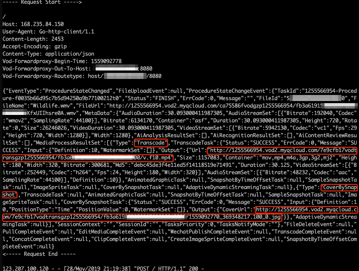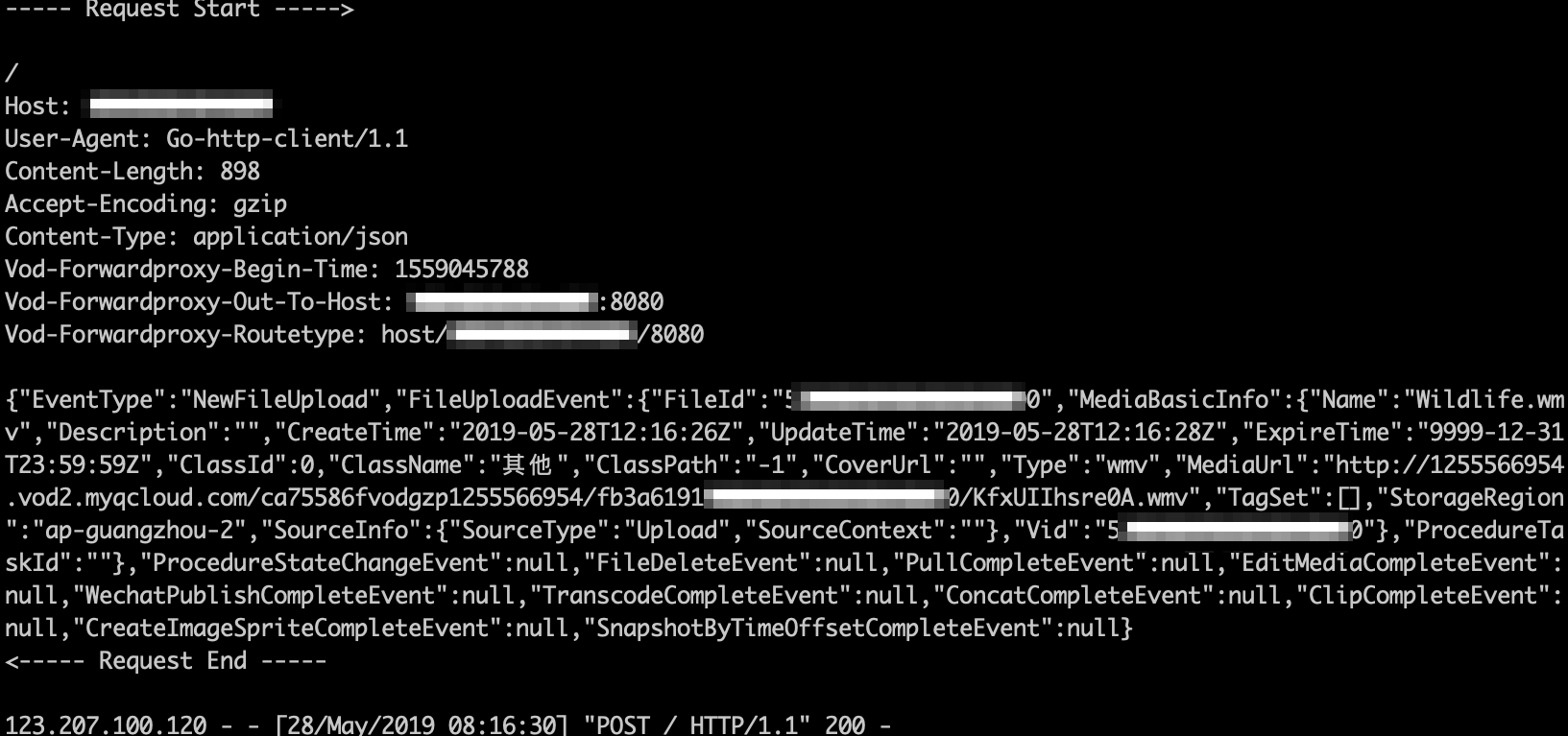 至此,您上传了一个视频并对其执行了转码任务。上传和转码完成后,您的回调接收服务分别接收到了一个“视频上传完成”和“任务流状态变更”通知。