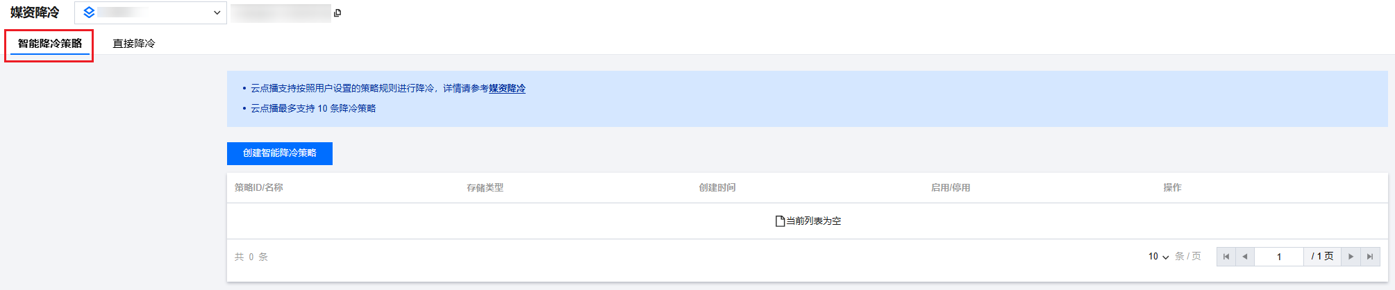 在 云点播控制台 (非管理员)进入目标应用后,选择媒资管理 > 媒资降冷,单击智能降冷策略。 步骤2:配置降冷策略