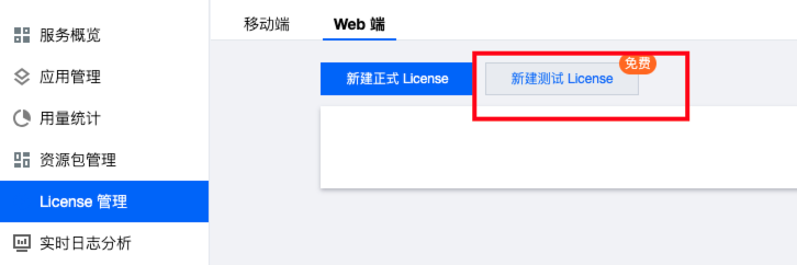 Web 端测试 License