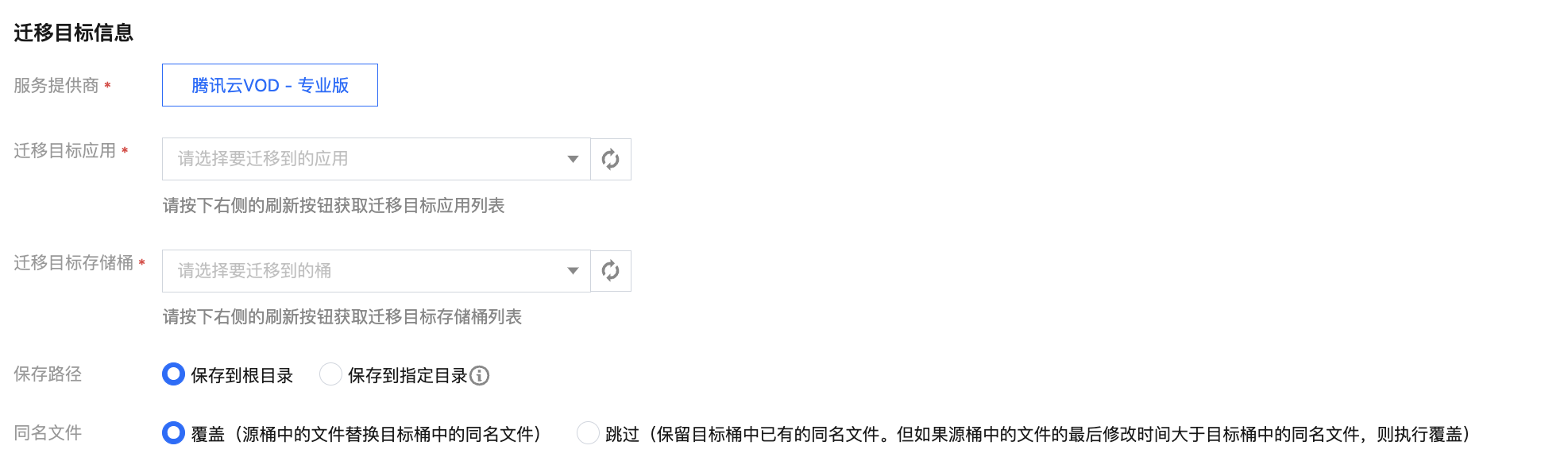 迁移目标存储桶:选择目标应用下的具体存储桶。