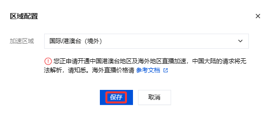 海外直播价格与中国大陆直播价格不同,详细计费请参见 计费概述。 在非加速区域使用该播放地址,该播放地址会无法正常使用。