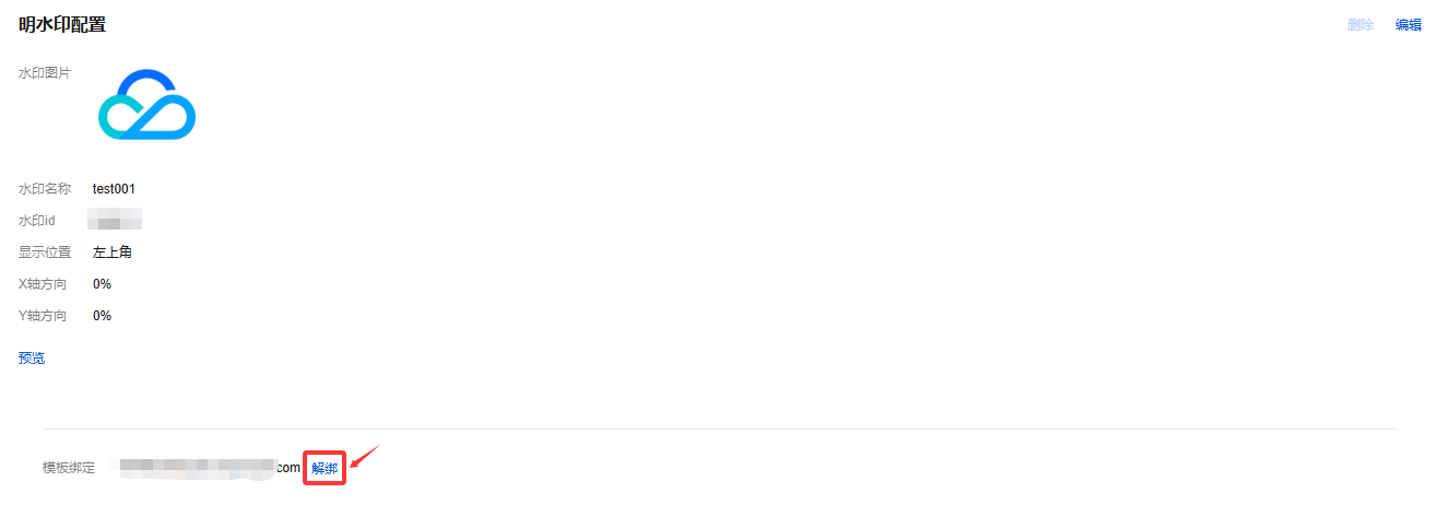 域名维度绑定和解绑明水印模板的具体操作及相关说明,请参见 明水印配置。