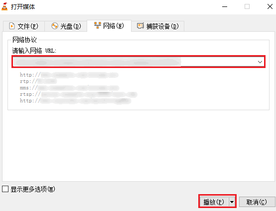 3. 在输入框中填入播放地址,或者扫描播放地址的二维码录入。