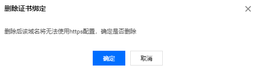 2. 确定是否删除证书绑定,单击确定即可成功删除。