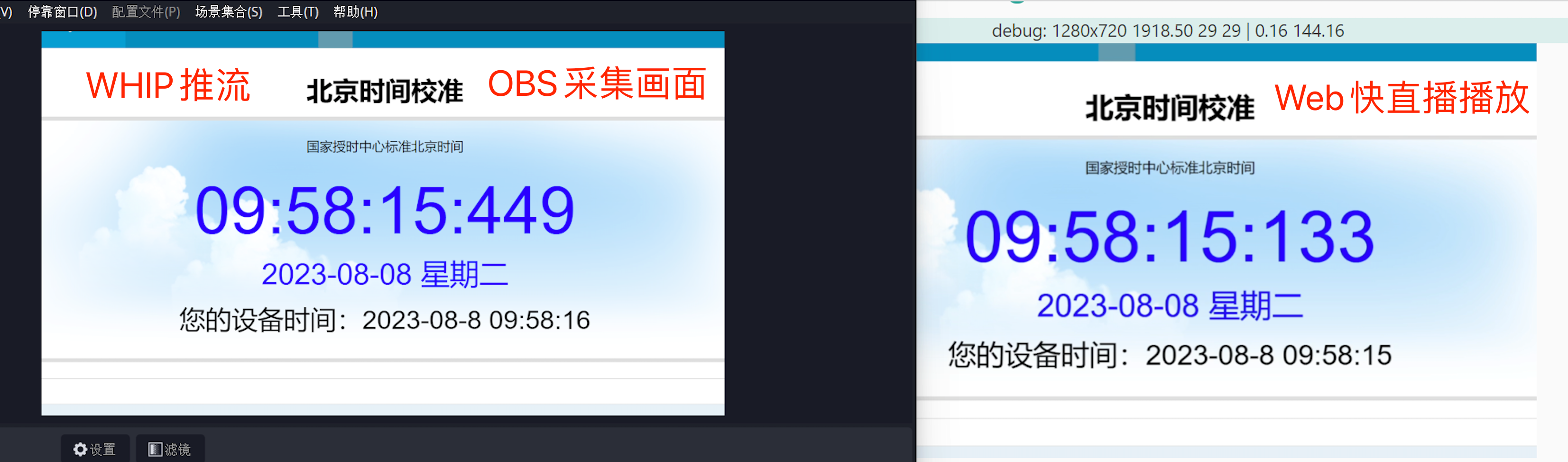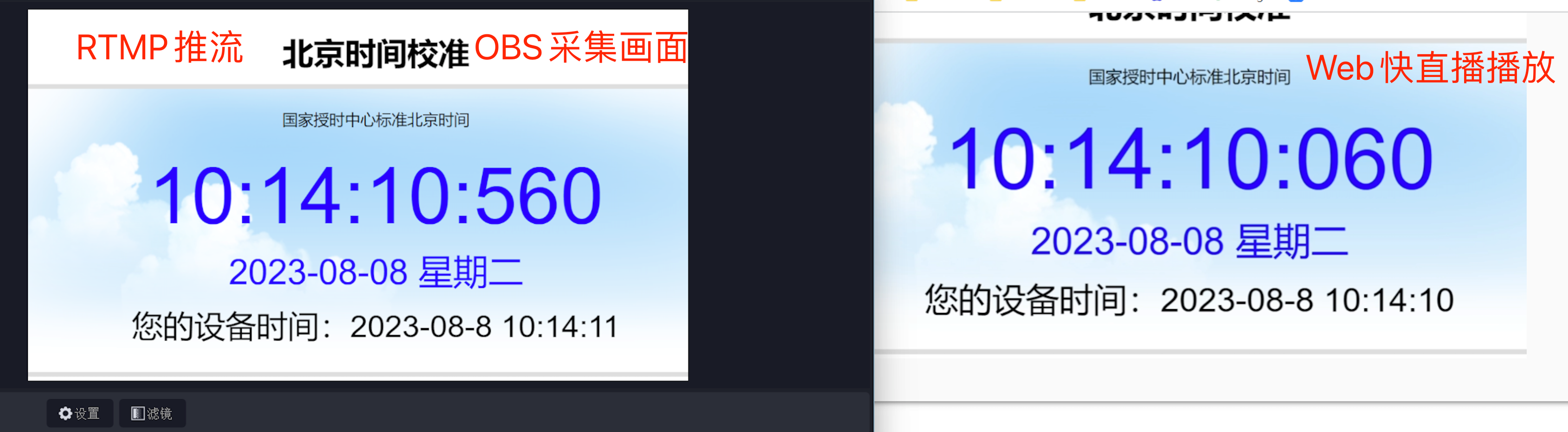 若您需要了解更多关于 OBS 推流的用法,可以参见 OBS 推流 。 OBS WebRTC 推流与 RTMP 协议推流的端到端延时对比