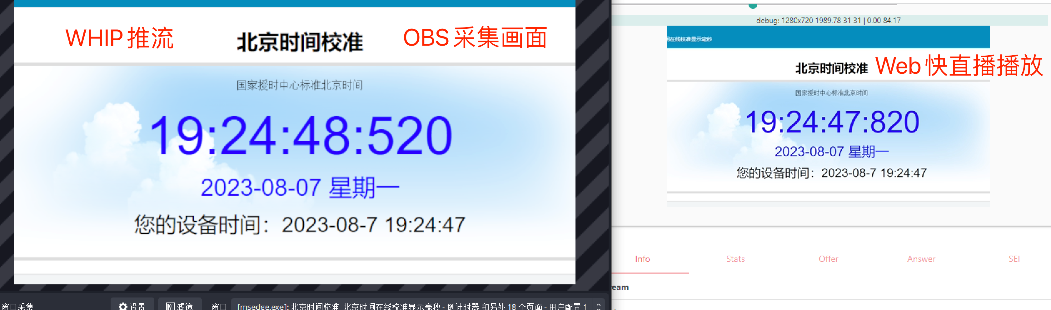 端到端延时受到设备性能、编码参数、网络传输、播放器缓存等多个因素的影响,并在直播过程中可能出现一定范围的波动。在此场景中,我们将比较 x264 多slice编码与单slice编码在端到端延时方面的差异。推流端使用 OBS工 具,播放端采用 Web 快直播。