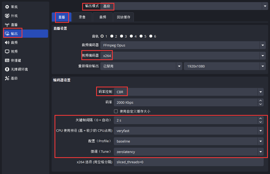 当您在 OBS 的微调(Tune)选项中配置了zerolatency(零延迟)模式后,OBS 会自动启用多slice编码,以提高编码速度并降低延迟。