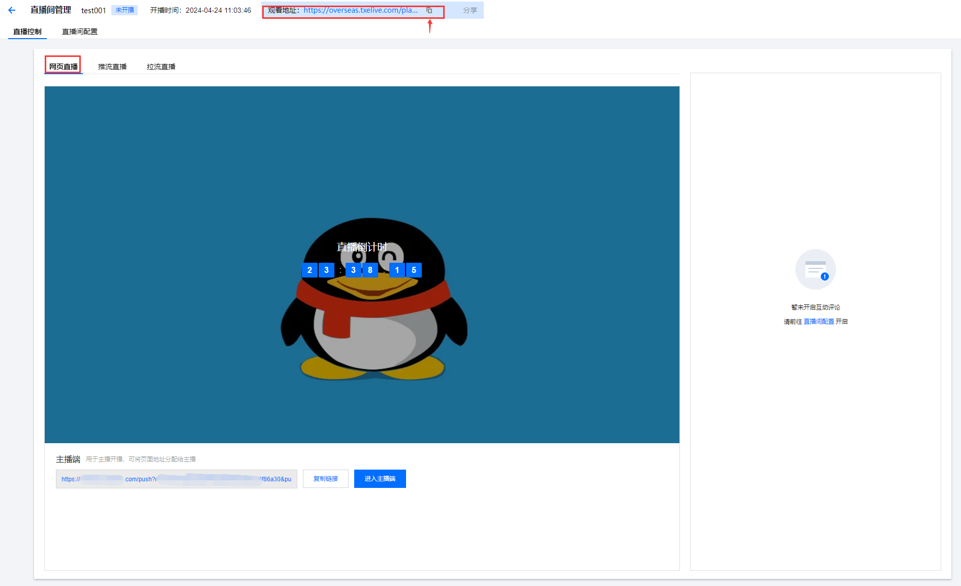3. 如需开启评论功能,请前往直播间配置进行设置。