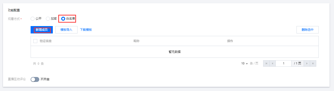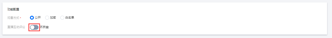 直播互动评论默认关闭,根据您的实际业务需求,可单击开启。 说明: