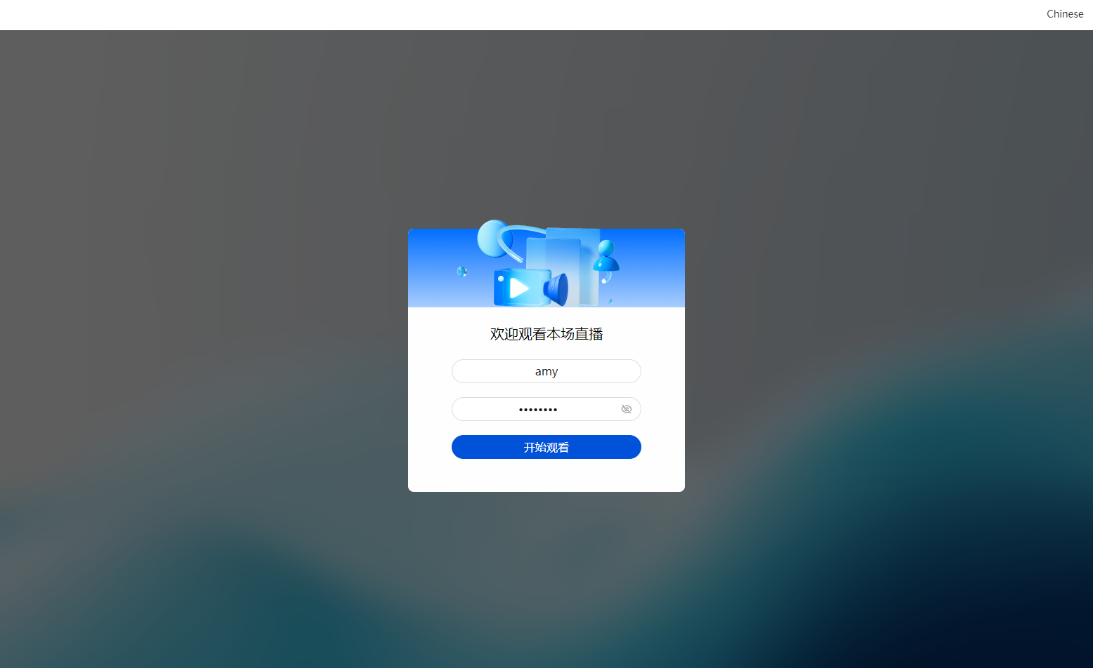 1. 当观众打开主播或管理侧分享的观看地址后,默认可以直接打开并观看直播。如果主播设置了加密或者白名单观看方式,观众需要在弹窗验证栏中输入验证信息(昵称和密码),验证通过后才能打开直播间页面进行观看。