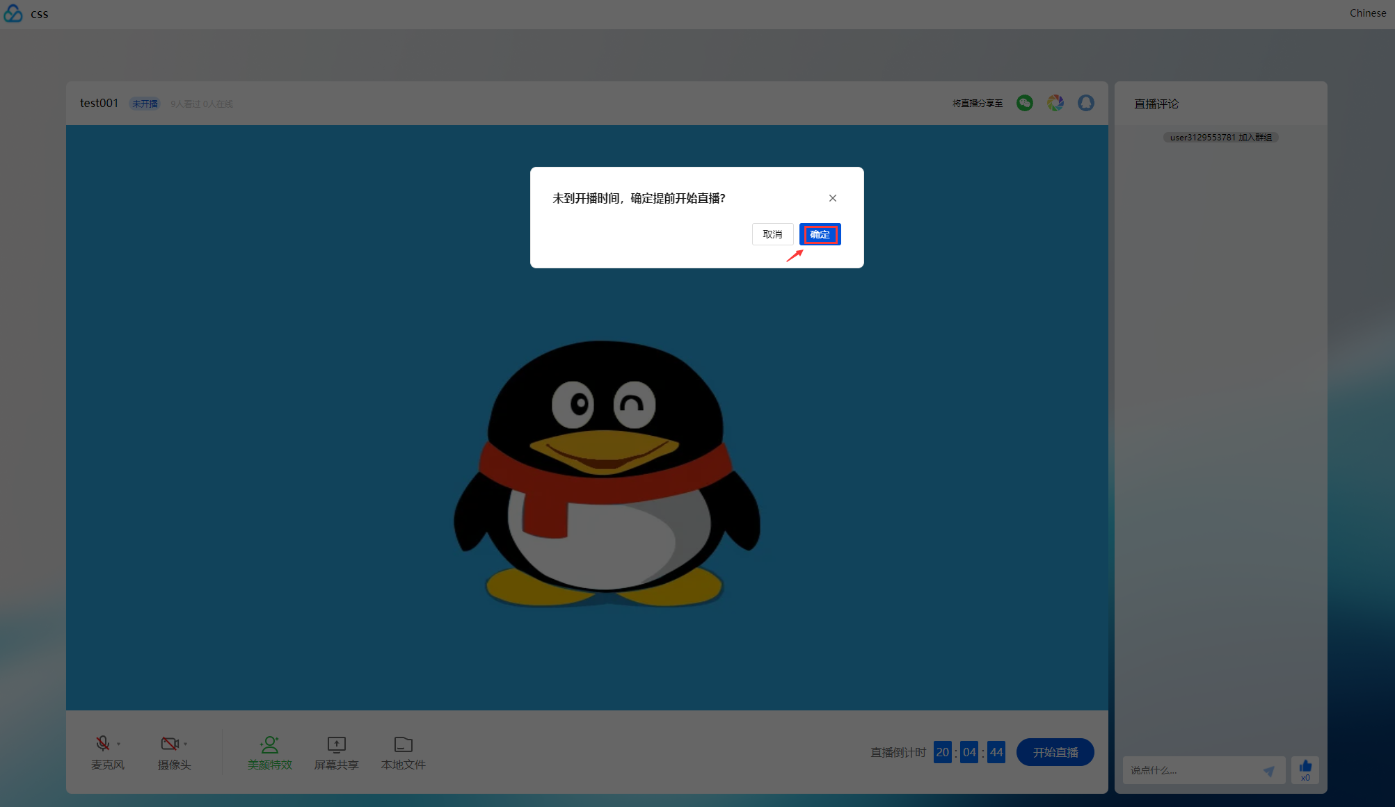 1. 即使未到开播时间,您也可以提前开启直播。单击右下角的开始直播。