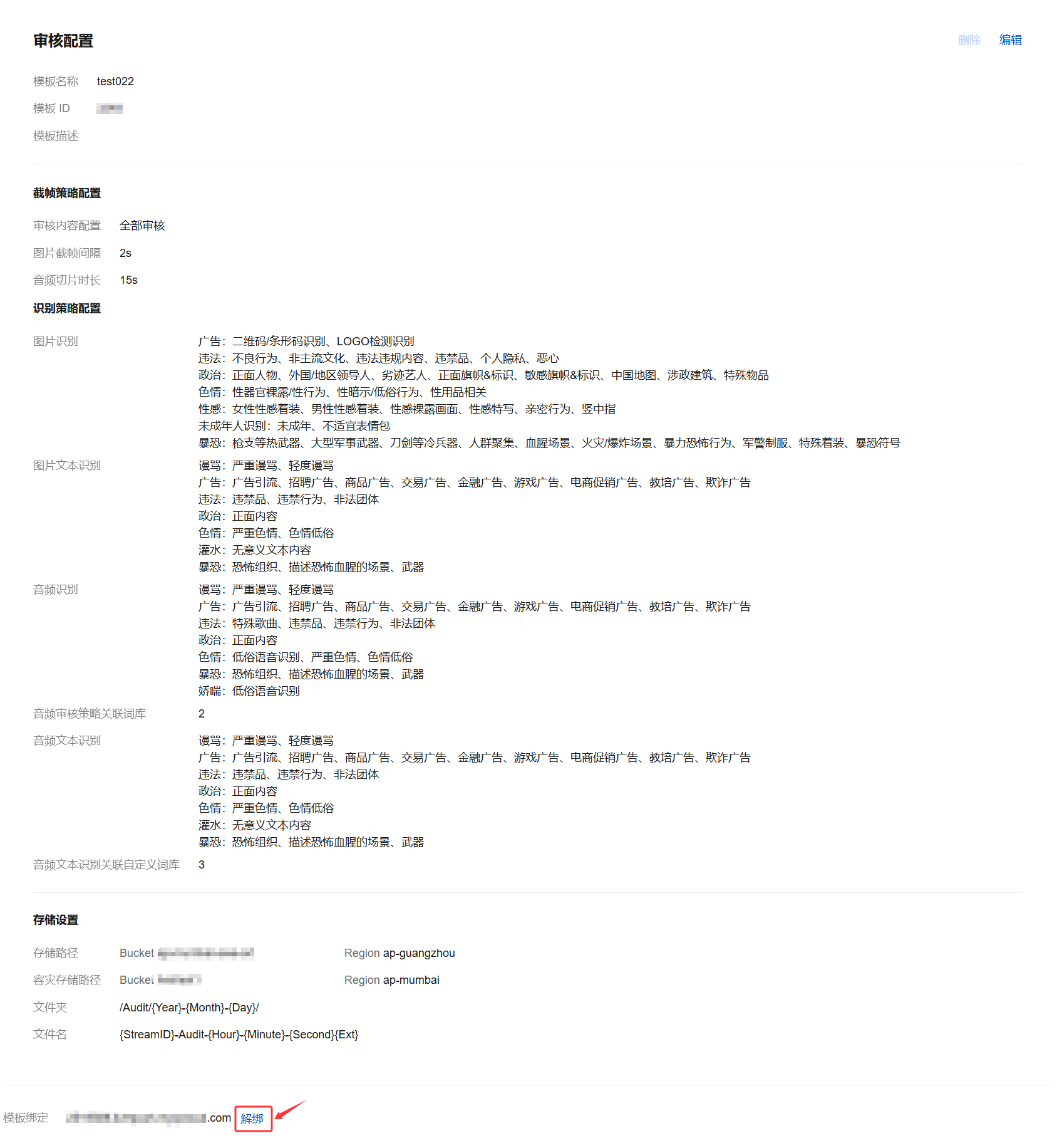 域名维度绑定和解绑审核模板的具体操作及相关说明,请参见 直播审核配置。