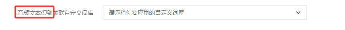 3. 图片识别关联自定义词库或音频识别关联自定义词库下拉列表中可选择已配置的自定义词库。