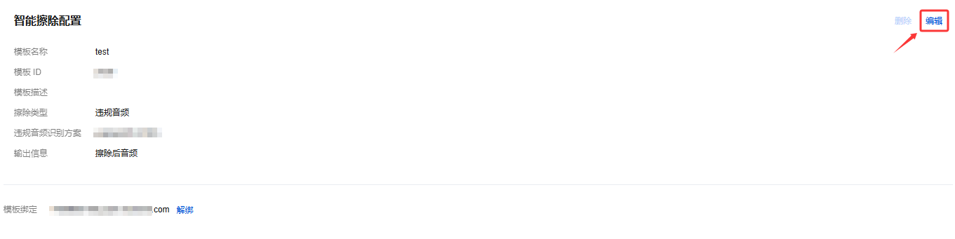 域名维度绑定和解绑智能擦除模板的具体操作及相关说明,请参见 智能擦除配置。