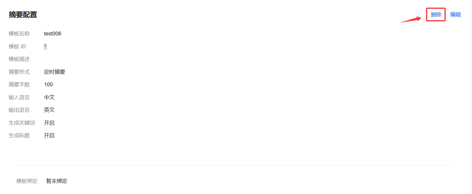 2. 选择未关联播放域名的摘要模板,单击删除。