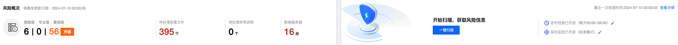 待处理风险:目标服务器检测出待处理的风险文件数量。