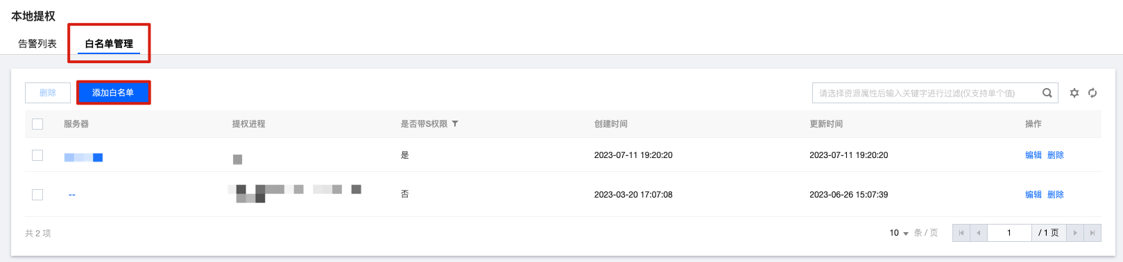 本地提权功能支持添加白名单,通过设置白名单提权条件,将满足条件的事件标记为白名单。