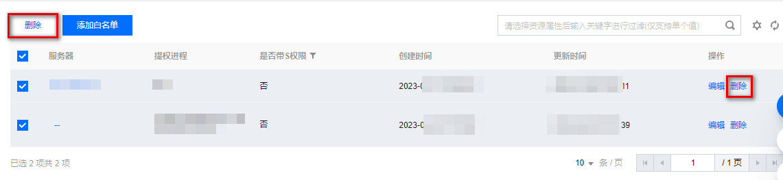 删除:在白名单列表中,支持单选或多选已配置的白名单进行删除。