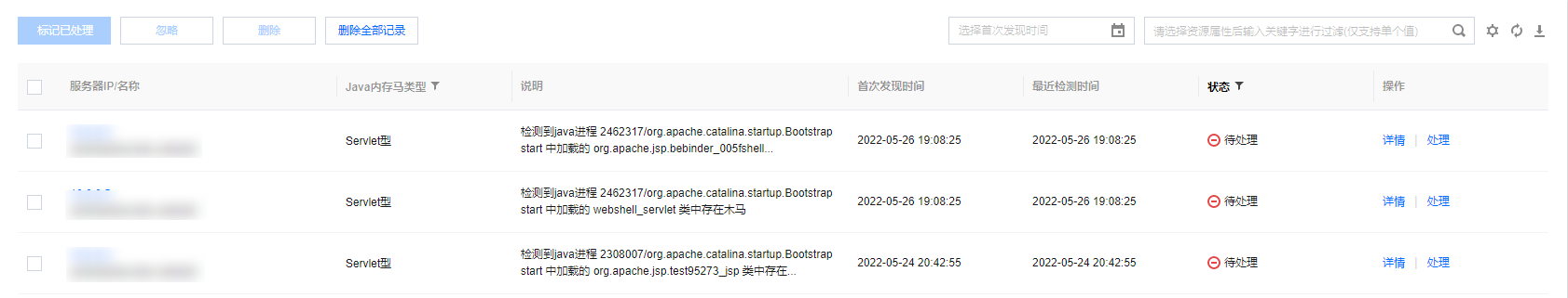 3. 启用 Java 内存马插件后,您可选择告警列表,可查看检测到的 Java 内存马事件,并进行相关处理操作。