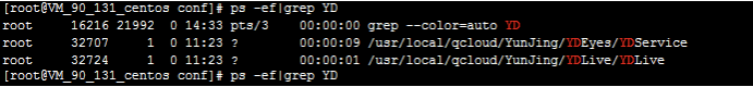 执行命令:ps -ef | grep YD 查看 YDService,YDLive 进程是否有运行。