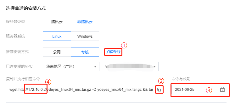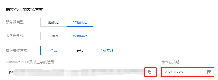 通过公网接入:单击图标复制并执行相应命令,即可安装主机安全客户端,需注意命令有效期。 通过专线接入:选择已连专线的 VPC,单击图标复制并执行相应命令,即可安装主机安全客户端,需注意命令有效期。 说明: