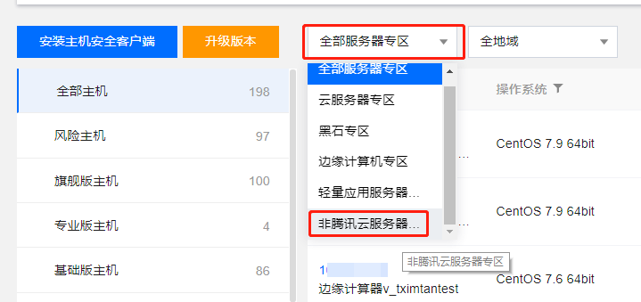 2. 安装成功后在 主机列表 页面,单击全部服务器专区 > 非腾讯云服务器专区,即可查看对应服务器。 说明: