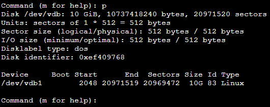 对齐操作清除云硬盘原有数据,请您谨慎操作!如需操作,则请提前 创建快照 以避免造成您的业务数据丢失。 1. 执行以下命令,进入 fdisk 工具。