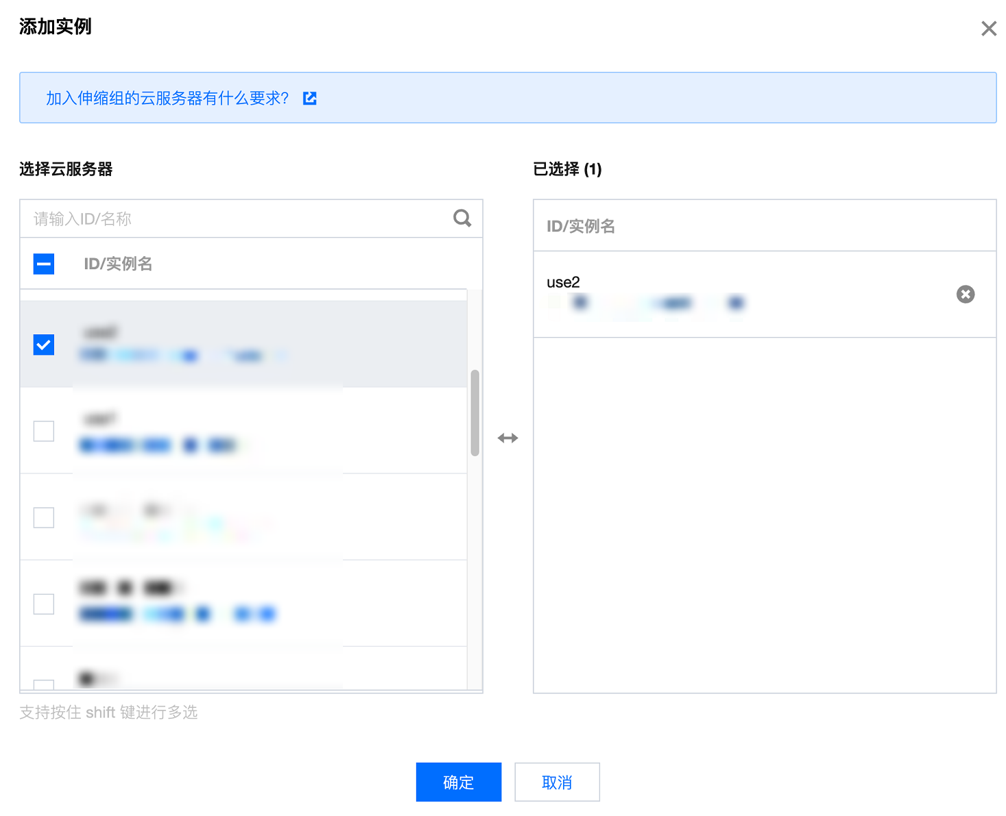 3. 在弹出的添加实例窗口中,选择集群已有的云服务器加入伸缩组。如下图所示: