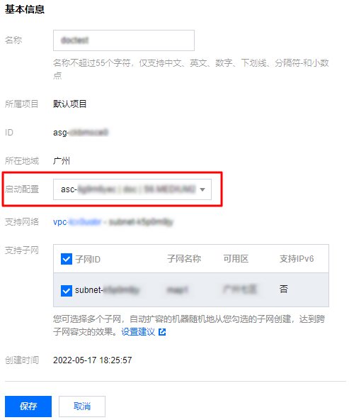面,选择需配置伸缩组 ID,进入该伸缩组详情页面。