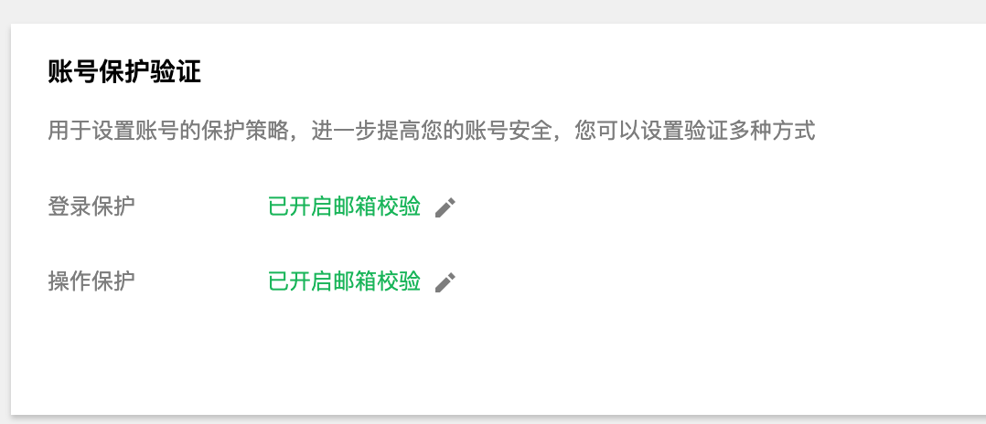 3. 通过身份验证后,选择合适的保护类型即成功开启登录保护。