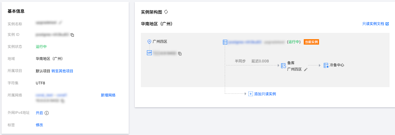 在实例详情页,单击实例架构图中的添加只读实例,进入只读实例购买页。