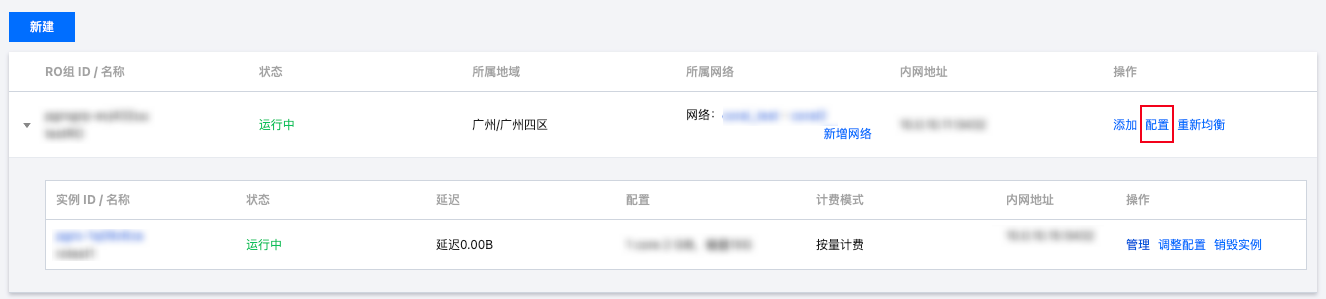 2. 在实例管理页面,选择只读实例页,在 RO 组列单击配置,进入 RO 组配置页。
