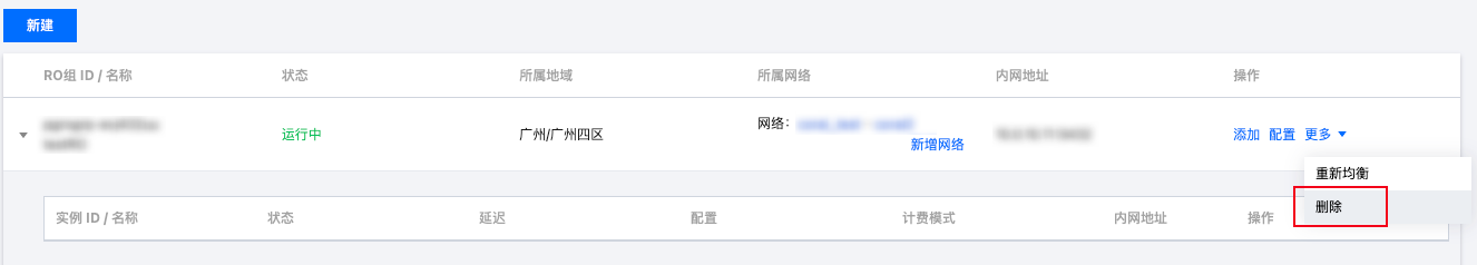 2. 在实例管理页面,选择只读实例页,可查看所有 RO 组列表,当 RO 组中无任何 RO 实例后即可删除。